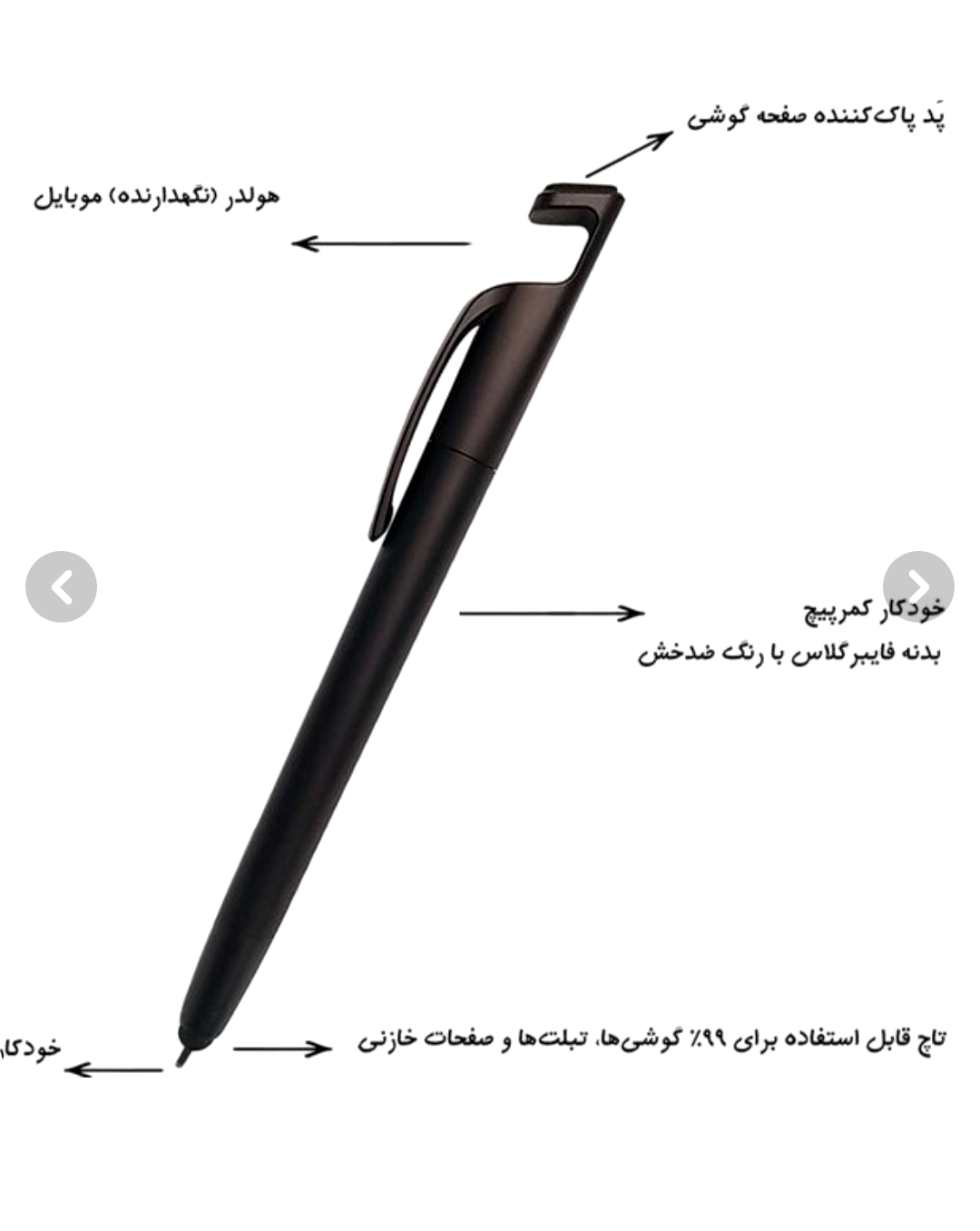 قلم لمسی گوشی و تبلت همراه با خودکار ،نگهدارنده موبایل و پد پاک کننده صفحه نمایش